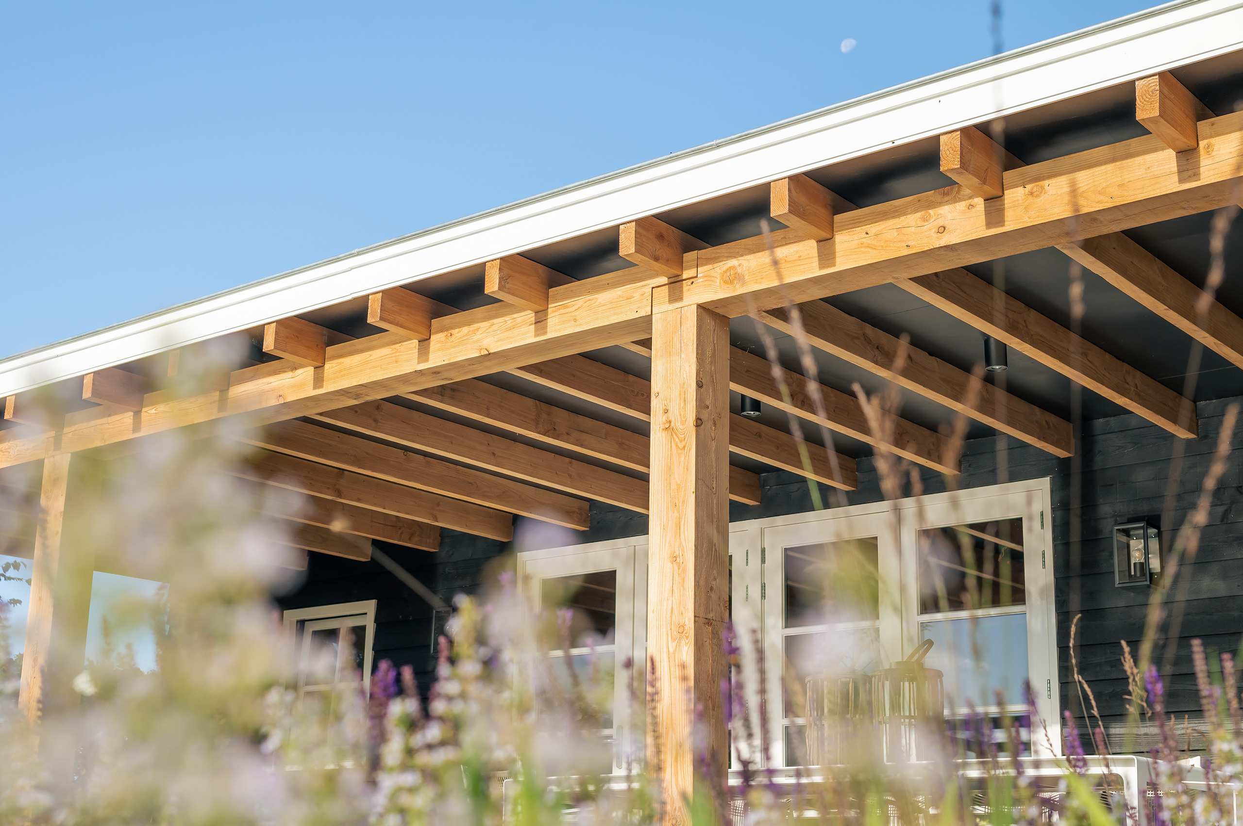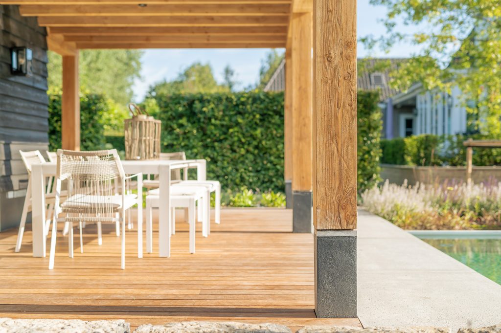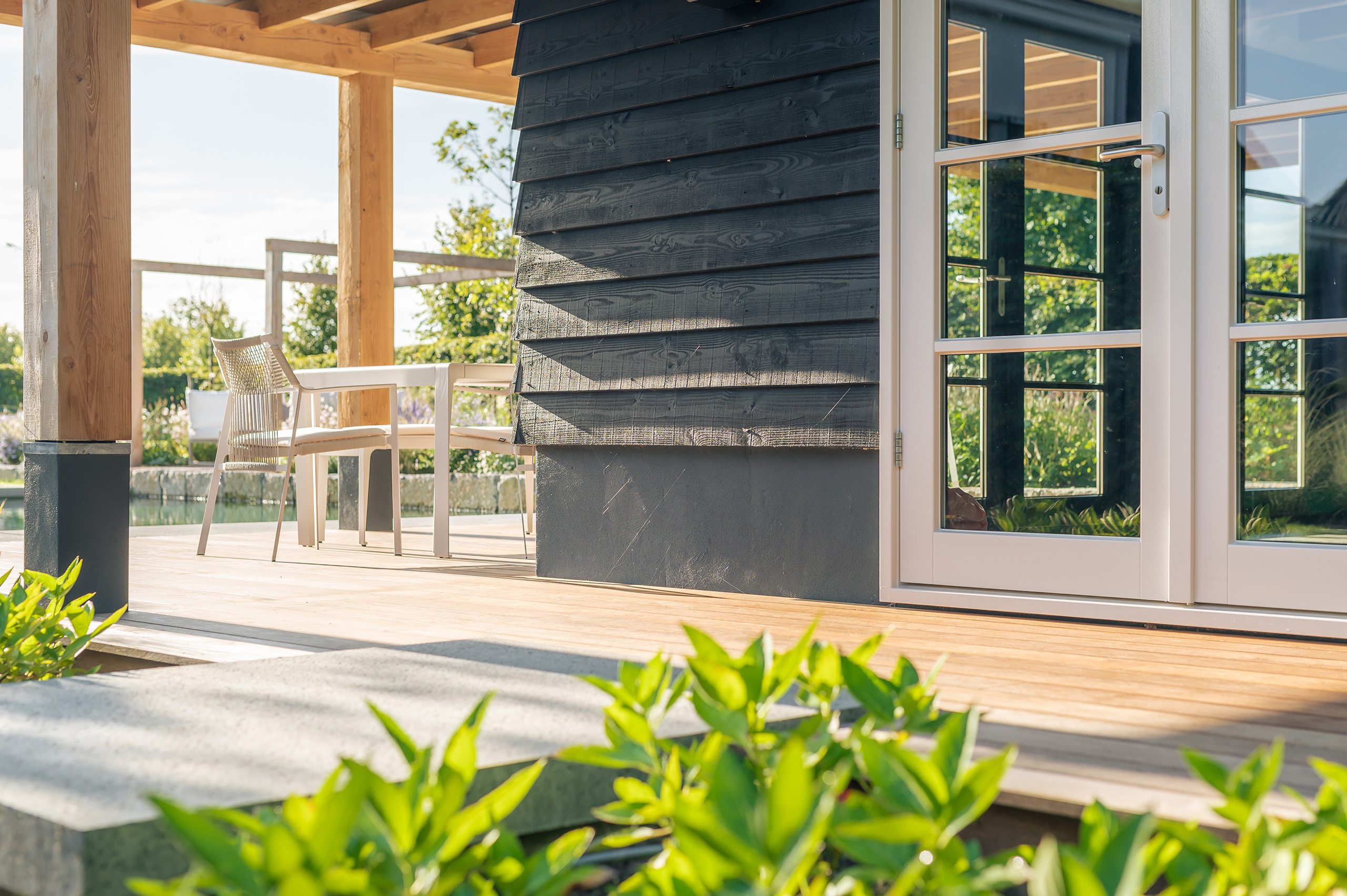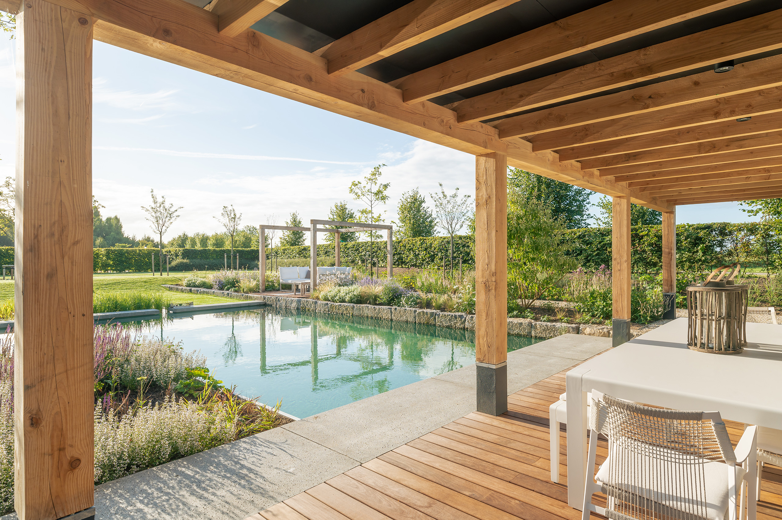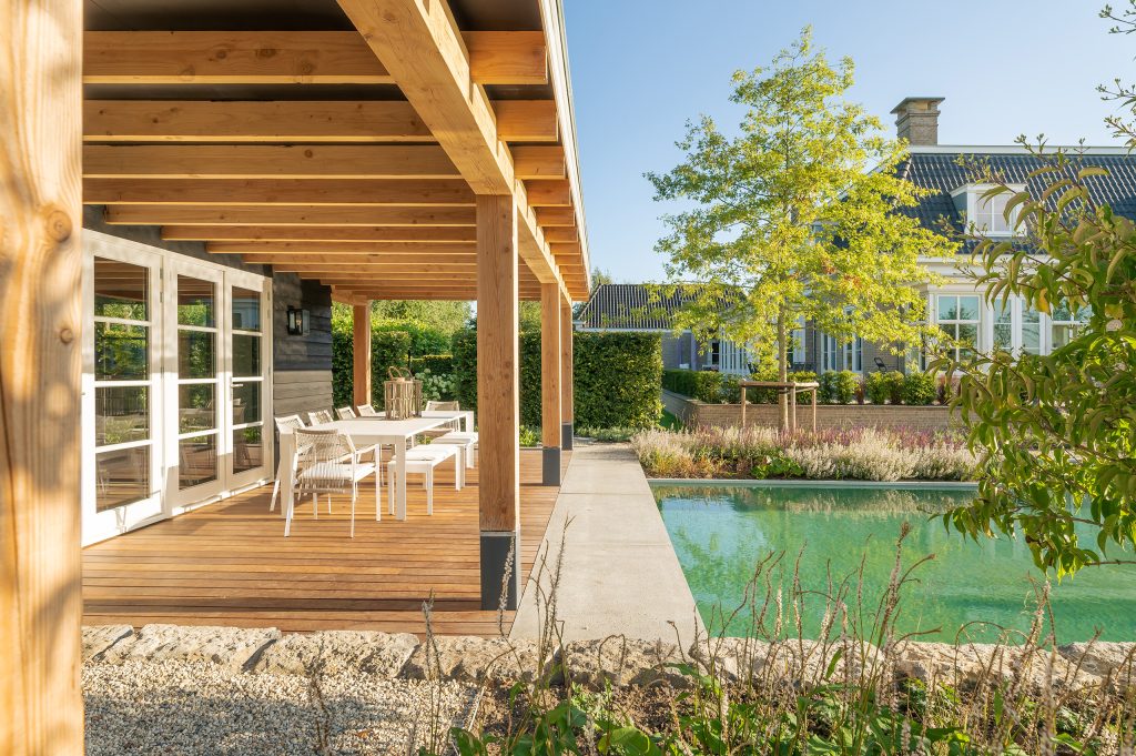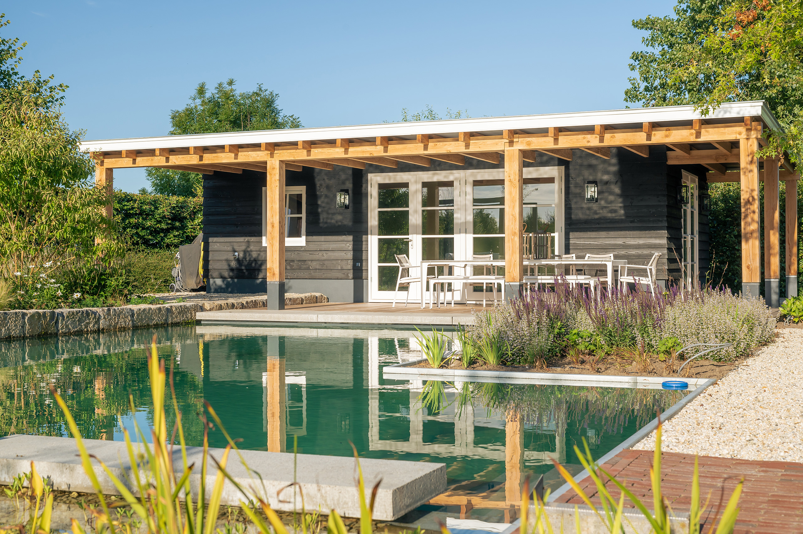 Houten tuinkamer met zwemvijver van Stantico Iconische Houtbouw
