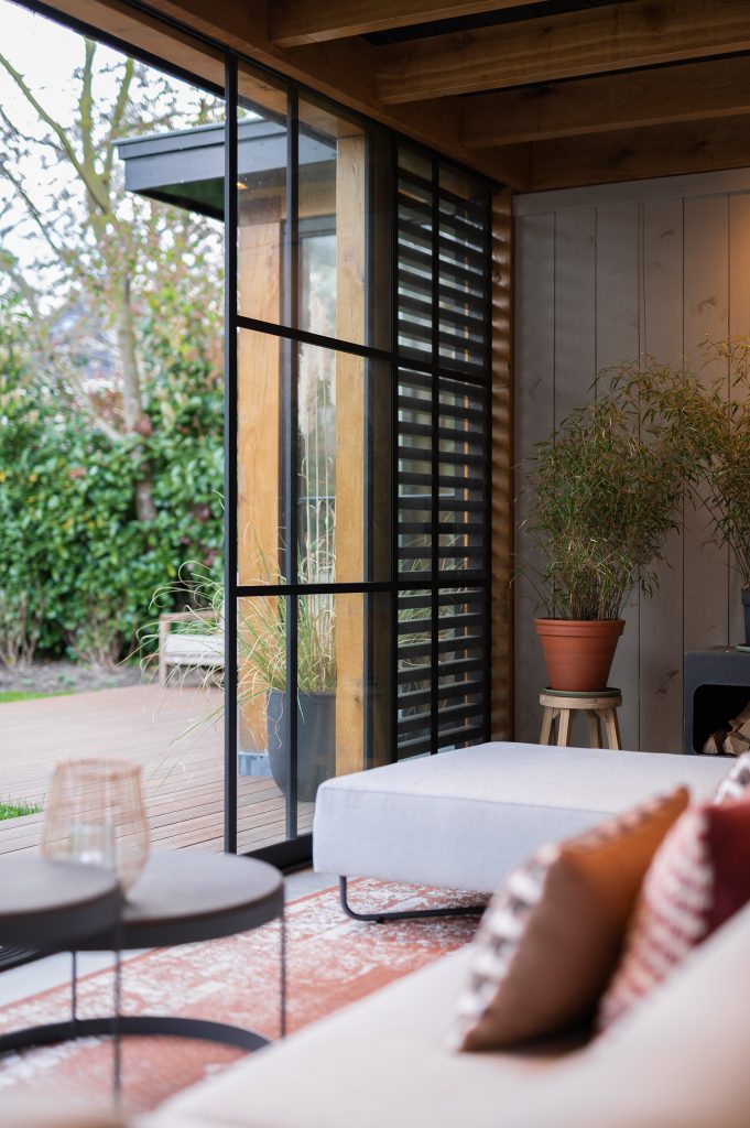 In de werkruimte zorgen geïsoleerde ramen voor natuurlijk licht, terwijl storende geluiden worden gedempt, waardoor een ideale omgeving voor productiviteit ontstaat. De tuinkamer combineert stijlvolle elementen met een naadloze connectie naar buiten, waardoor een rustige plek ontstaat om te ontspannen.