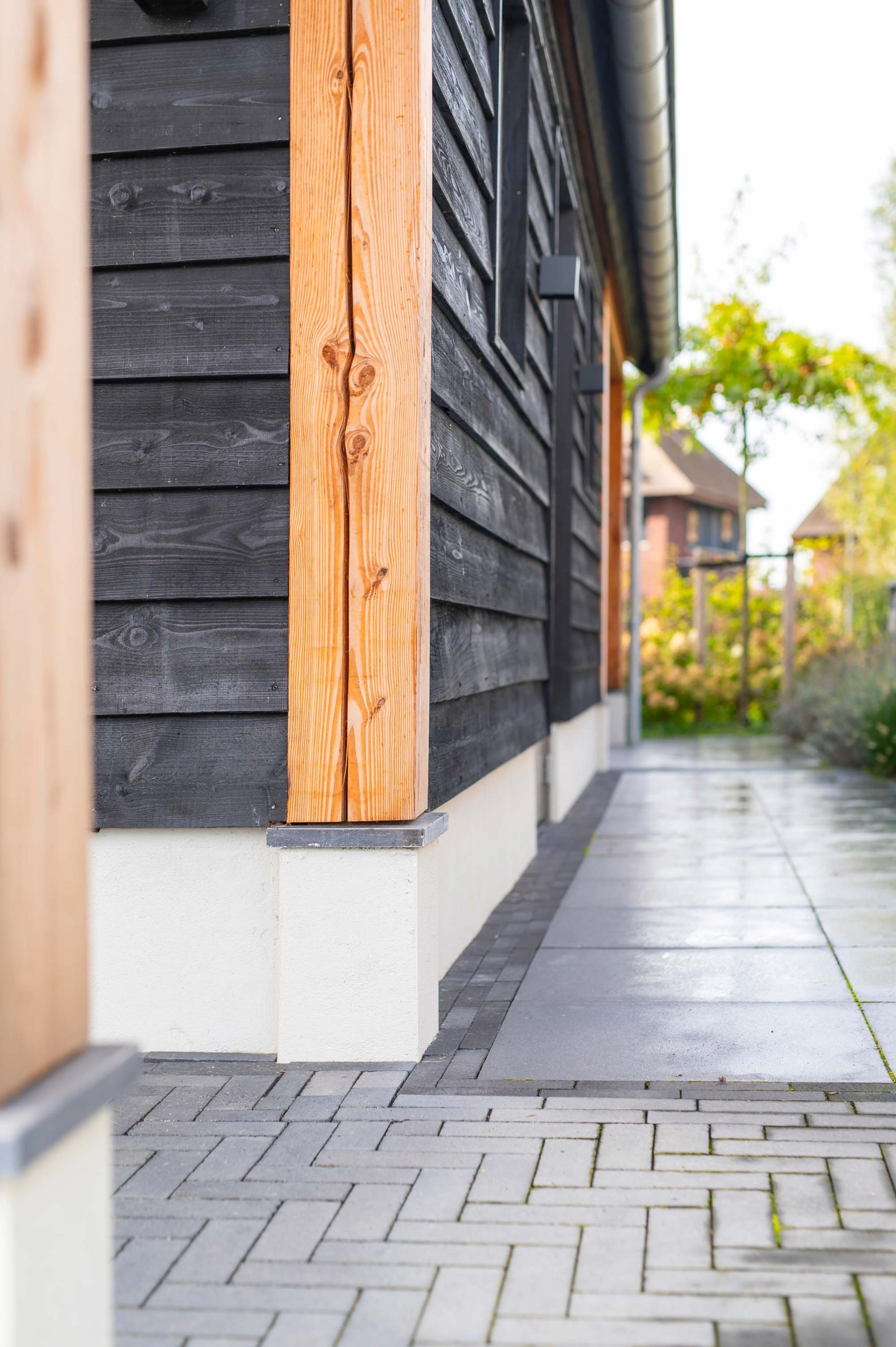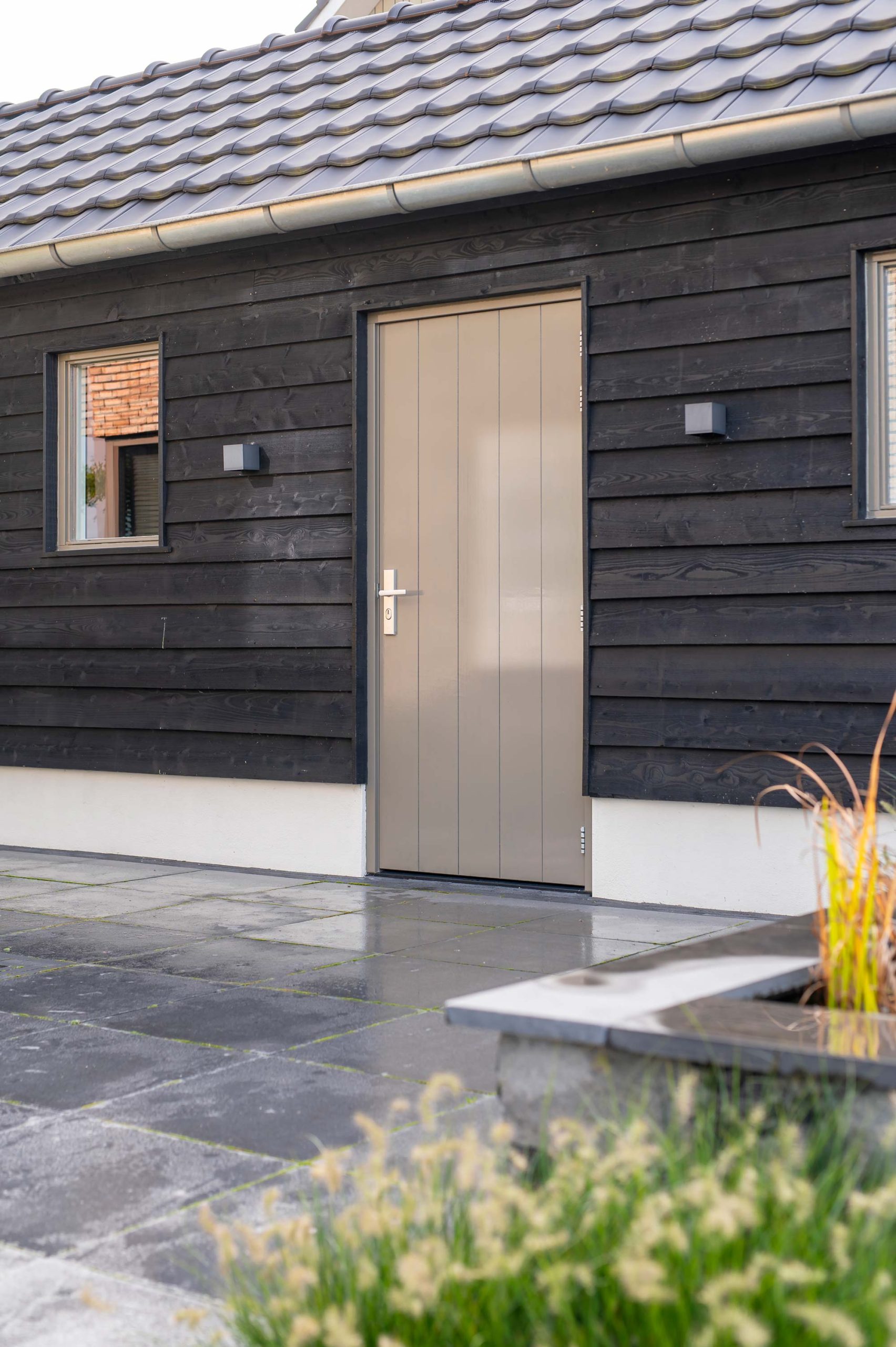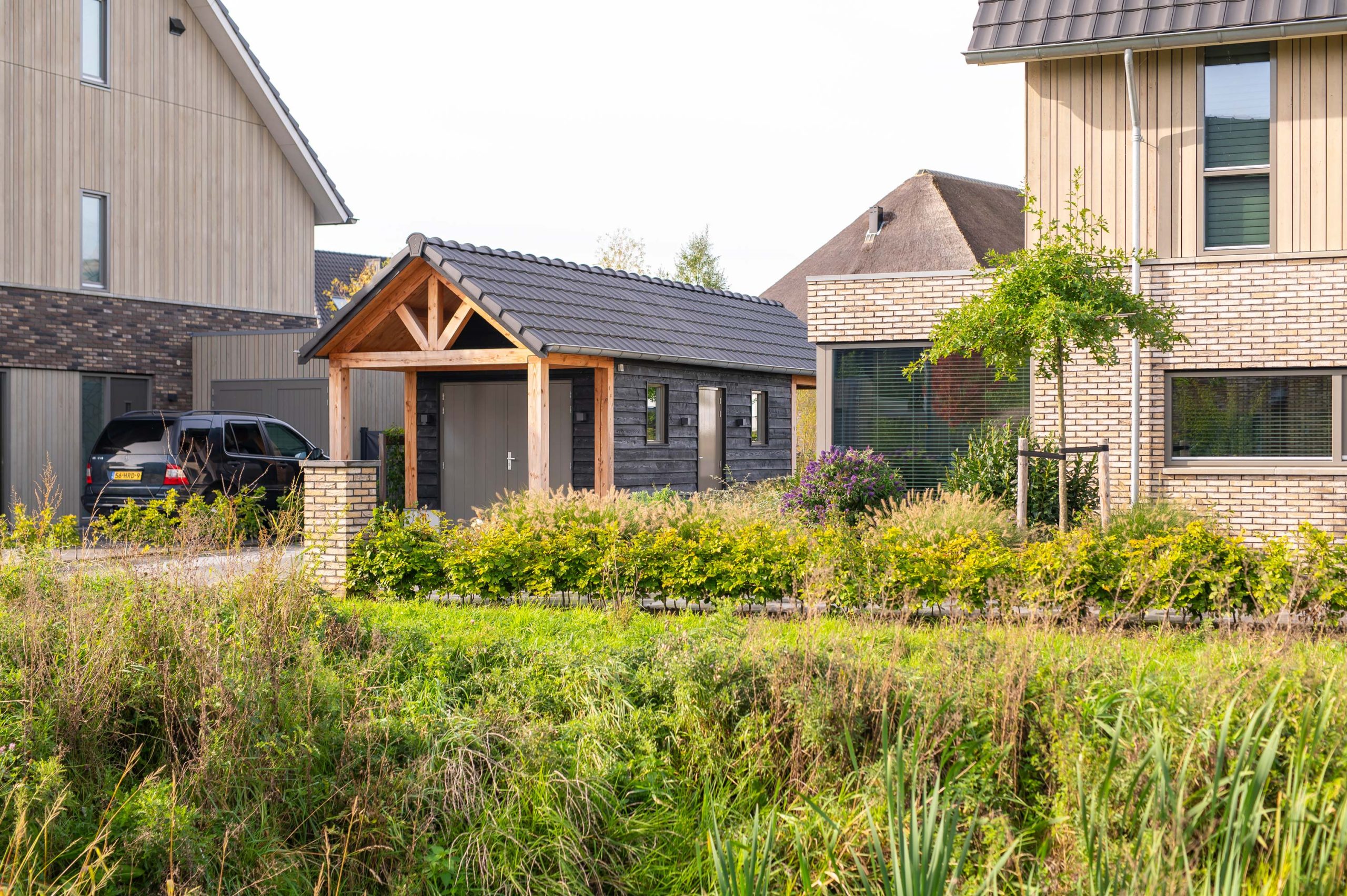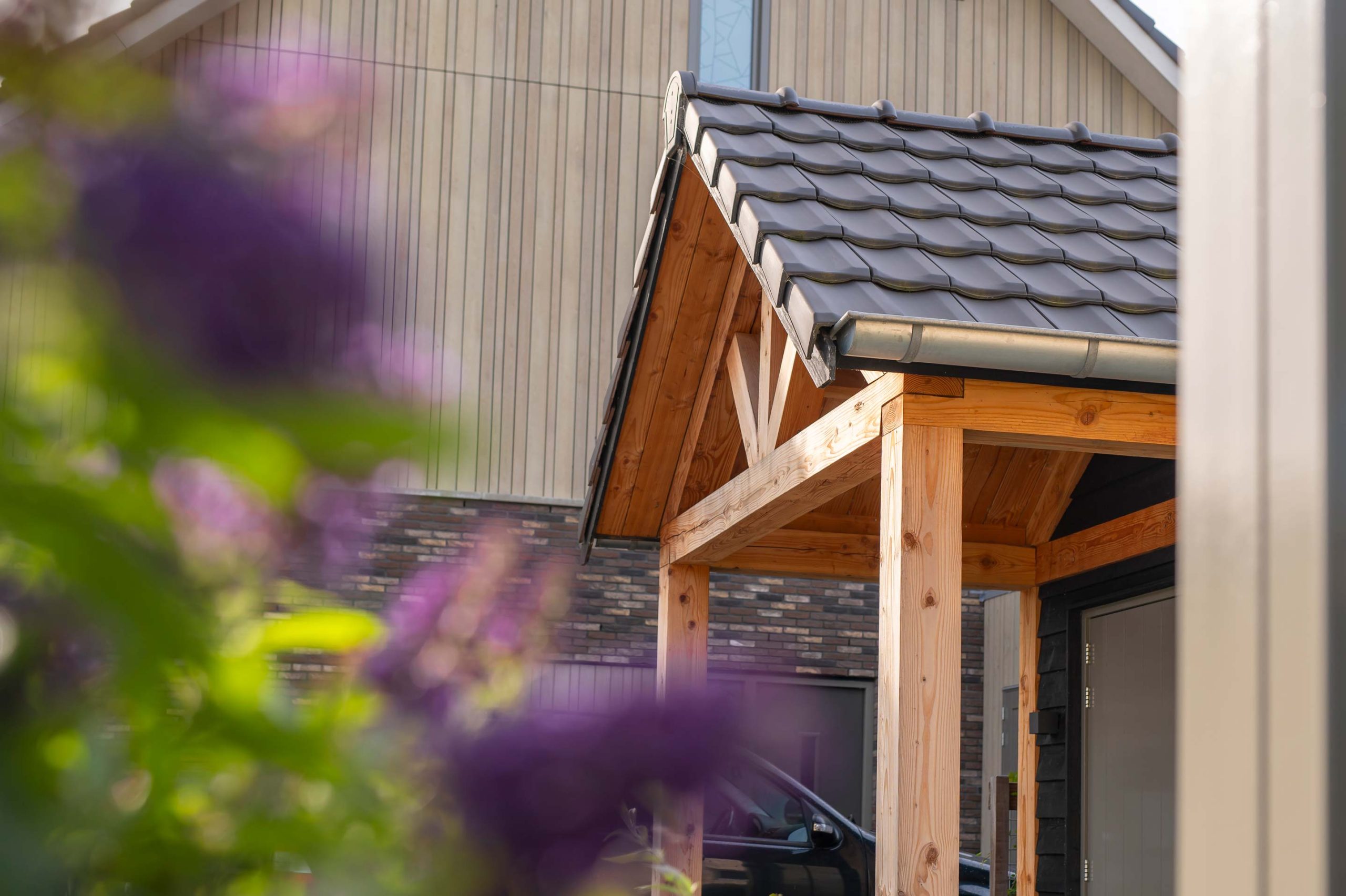 In Nijkerk mochten we aan de slag met een puntschuur en veranda. De ruime schuur heeft een robuuste look, dankzij het douglas hout en de betonnen vloer. Zo past deze goed in het totaalplaatje van het huis en de tuin. Aan de achterkant bevindt zich een veranda die wordt ingezet als loungeruimte. Hierdoor kunnen de bewoners genieten van hun tuin en tegelijkertijd droog of uit de zon zitten.