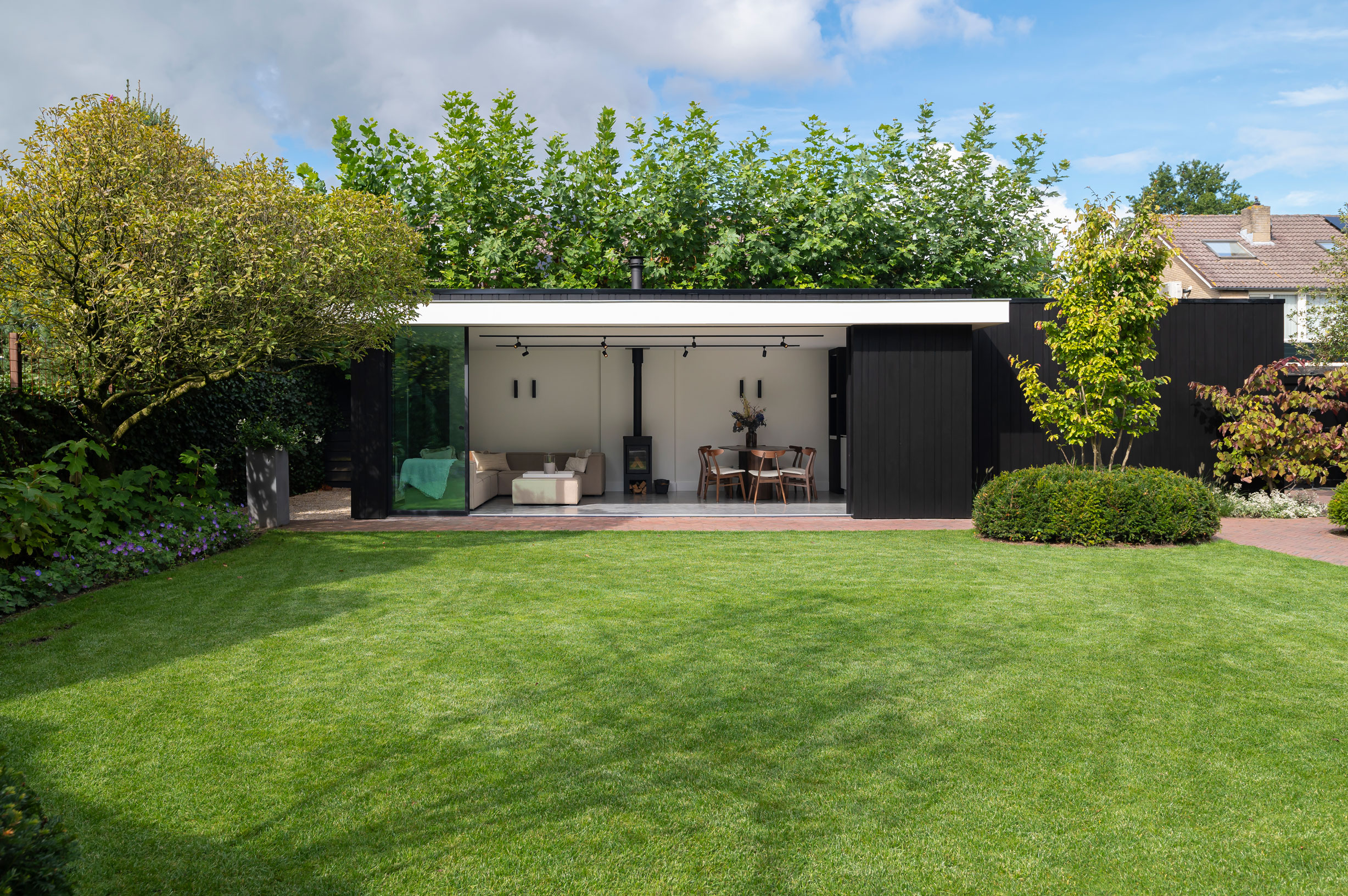 Een hoog schuin dak kan voor schaduw zorgen in de tuin van uw buren. Bij een plat dak is die kans veel kleiner, omdat het minder hoog doorloopt. Zo houdt u de tuin licht en open, zonder dat dit ten koste gaat van de buren.
